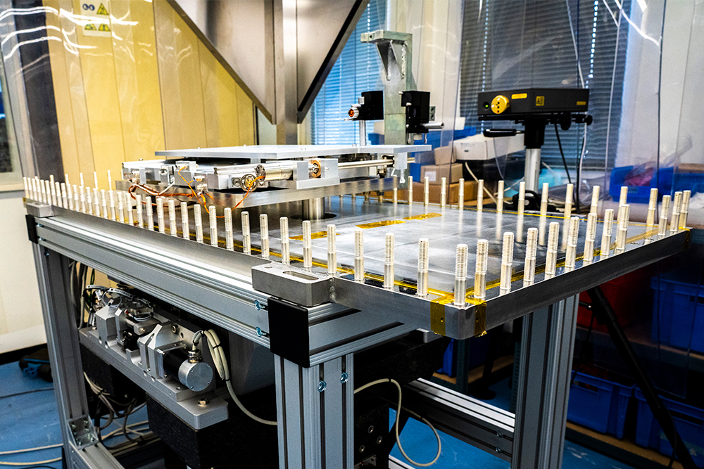K-B系统通常安装在一系列非真空和真空运动平台上,利用光栅反馈精确地控制反射镜在光束中平移和旋转。由于X射线在每个镜面上的入射角较小,因此只需施加弯曲力便可得到合适的反射镜形状。每个反射镜两端安装的致动器也需要通过光栅反馈来精确地控制反射镜的形状。