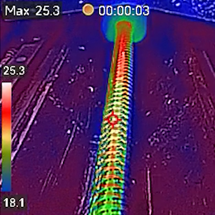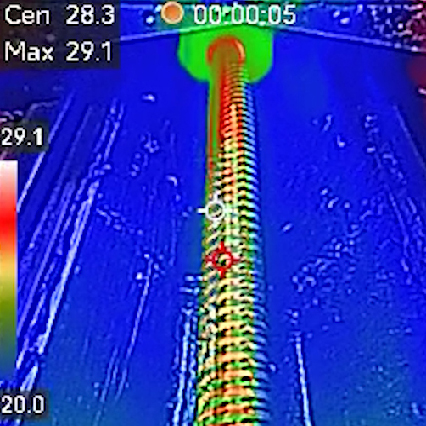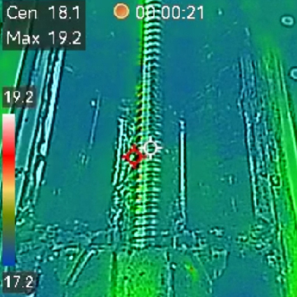 为了监测滚珠丝杠的热积聚现象,我们使用热成像摄像机来拍摄拆除防护罩后的机床。在以下阶段分别拍摄了滚珠丝杠的热图像: